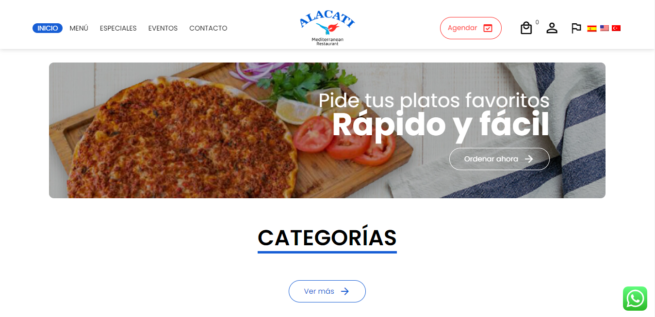 Llamativo, funcional y con versiones en tres idiomas: español, inglés y turco. Así es el sitio web que diseñamos en Símbolo para el restaurante de comida mediterranea Alacati.