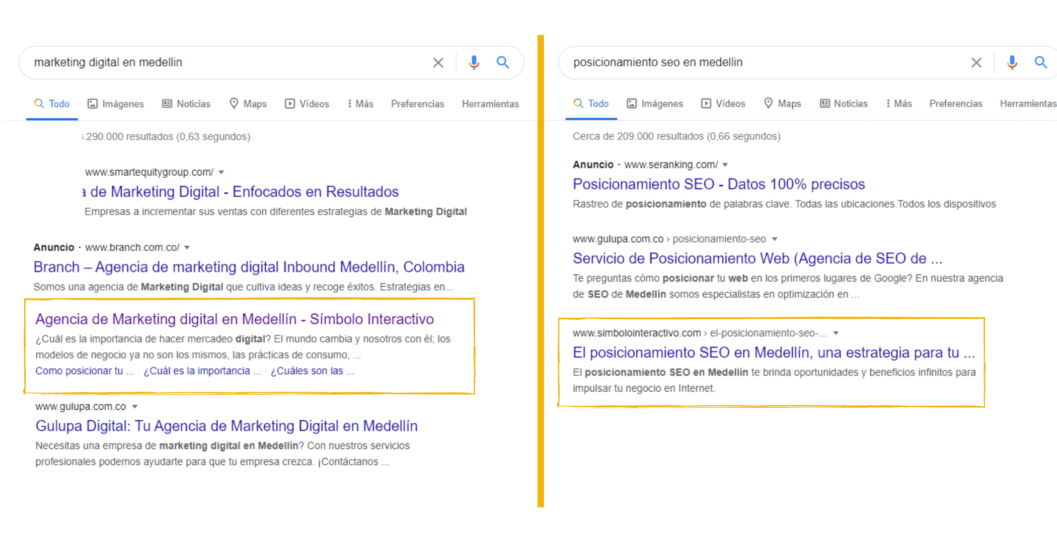 Te ponemos nuestro propio ejemplo (porque eso de predicar sin aplicar no va con nosotros). En símbolo todos nuestros servicios están posicionados en la primera página del motor de búsqueda de Google.